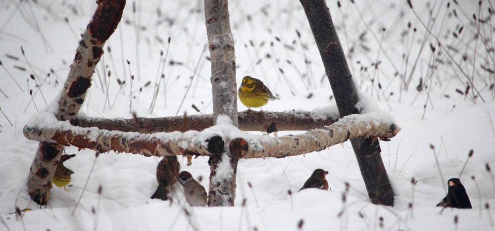 Goldammern - gelbe Farbtupfer im Winter.