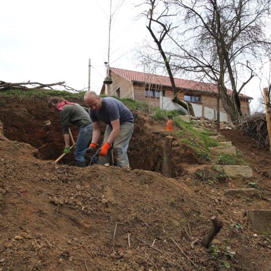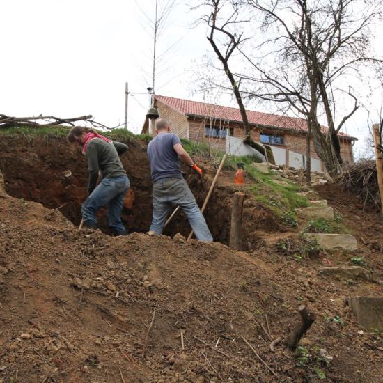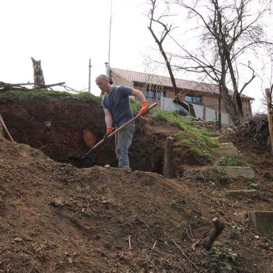…Eimer um Eimer, Schaufel für Schaufel. Es geht voran und hinein in die Erde. Waren es am ersten Wochenende ein halber, stehen wir jetzt beinahe zwei Meter tief.