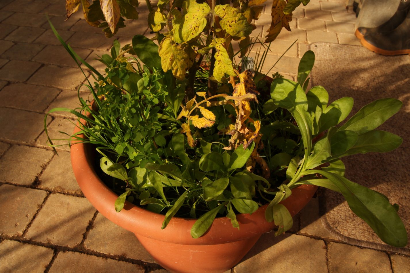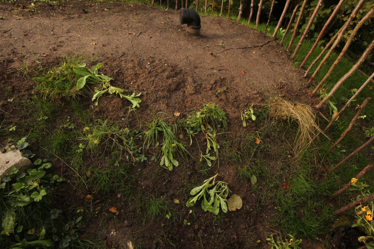 In den Tomatentöpfen ist im Laufe des Sommers so einiges aufgekeimt, vor allem Ringelblumen. Wo diese Samen nur wieder herkamen? Schade eigentlich, diese Pflänzchen einfach auf den Kompost zu werfen, dachte ich mir, und setzte kurzerhand alles auf den bisher noch spärlich bewachsenen Erdkellererdwall.