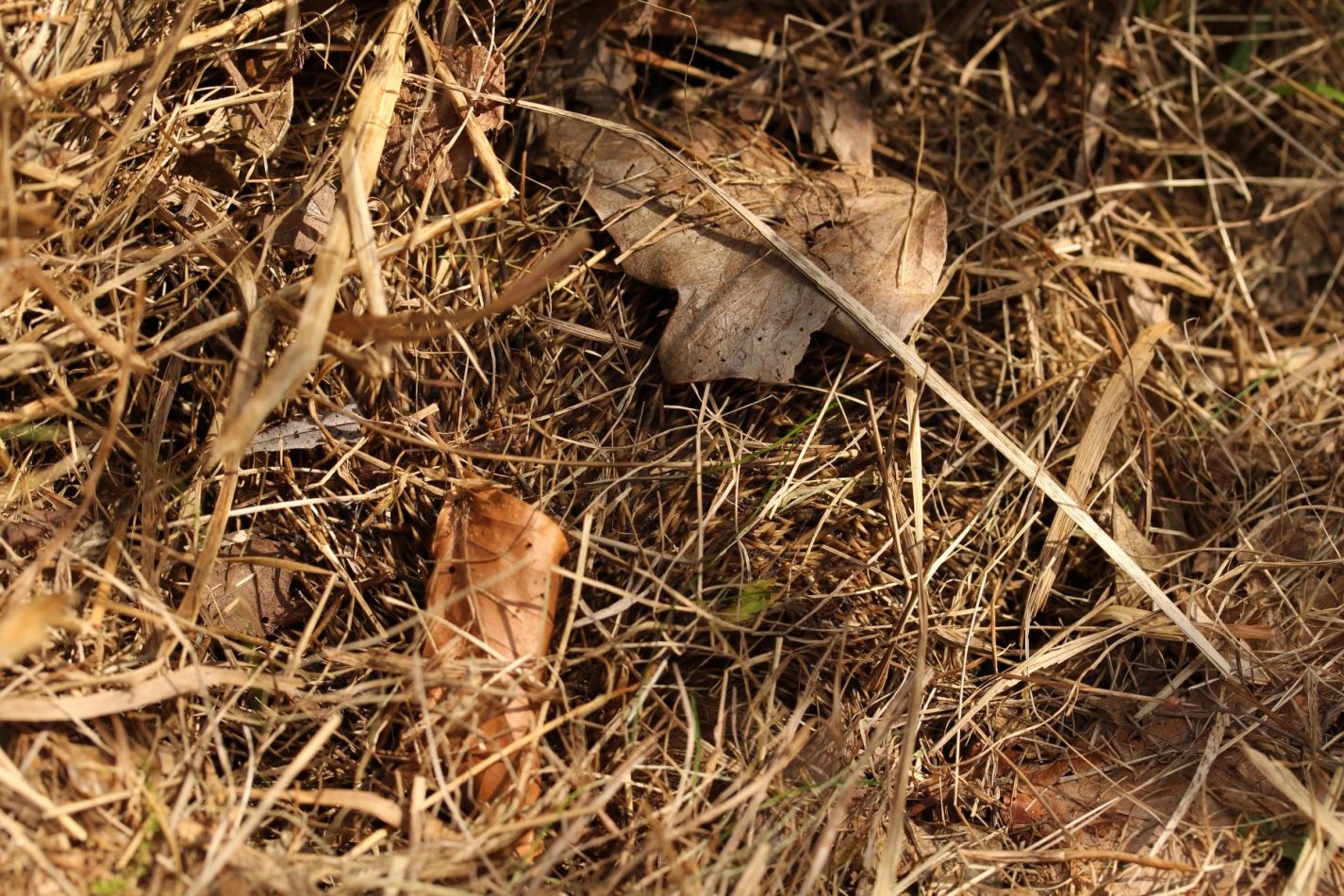 Oh, es ist wirklich schwierig zu erkennen! In der Mitte des Bildes, zwischen und unter den beiden Blättern kann man das Stachelkleid erahnen. Der Igel fauchte, als ich an seinem Heubett kruschtelte. Weiter stören wollte ich ihn nicht, daher gibt es nur dieses Suchbild 🙂