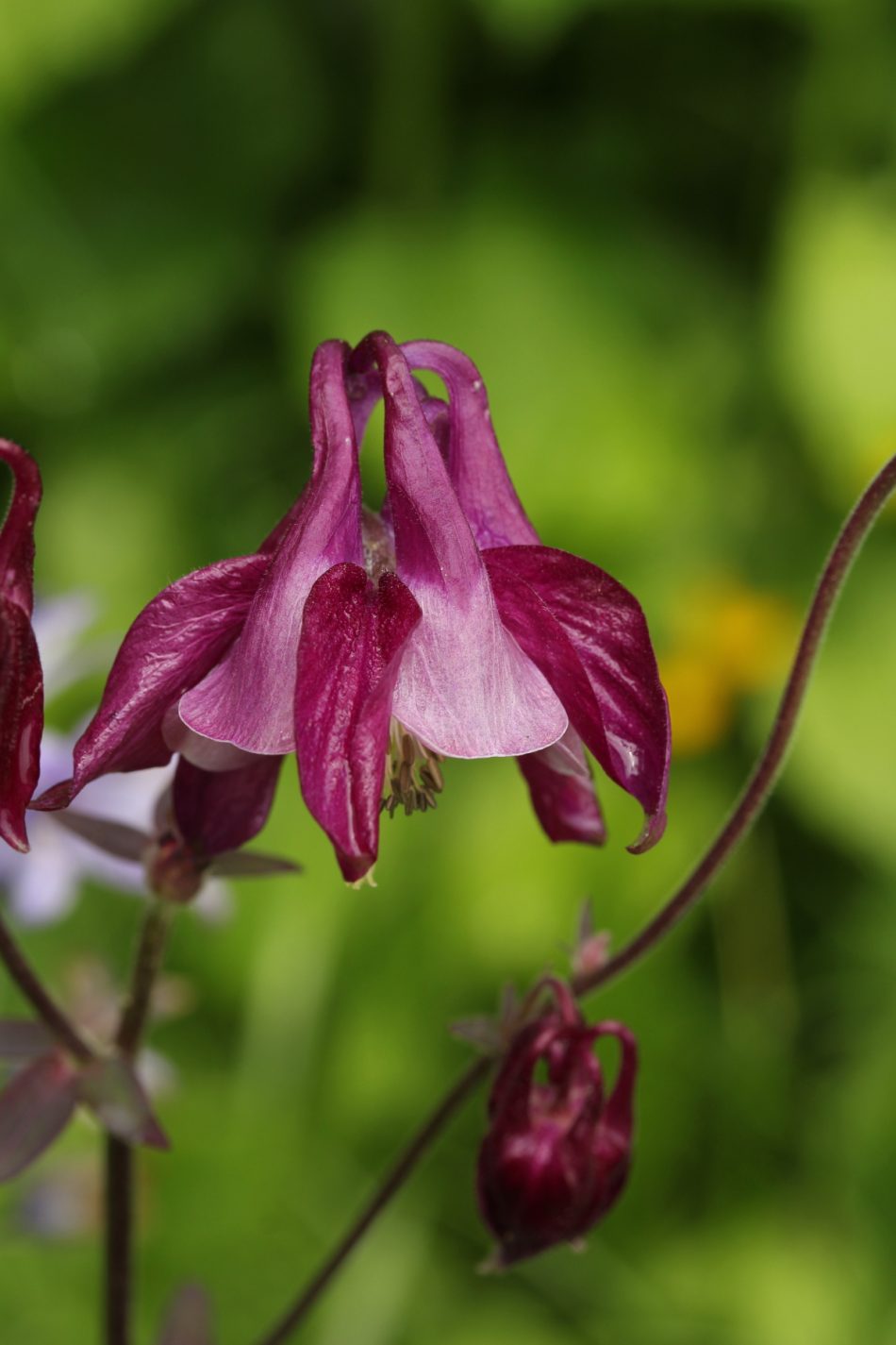 Wie bei vielen unserer Gartenpflanzen (vgl. Felsenbirne), so stehen auch bei der Akelei meistens nicht die heimischen Arten in unseren Gärten, sondern Verwandte aus Nordamerika (warum auch immer das im Handel so angeboten wird…). Die in Gärtnereien angebotenen Zuchtformen stammen wohl meist von nordamerikanischen Akeleienarten ab. Wenn du gerne heimische Arten oder Varianten davon pflanzen möchtest, achte am besten auf den lateinischen Namen (siehe unten*). Er verrät, von welcher Art die Pflanzen der Gärtnerei abstammen.