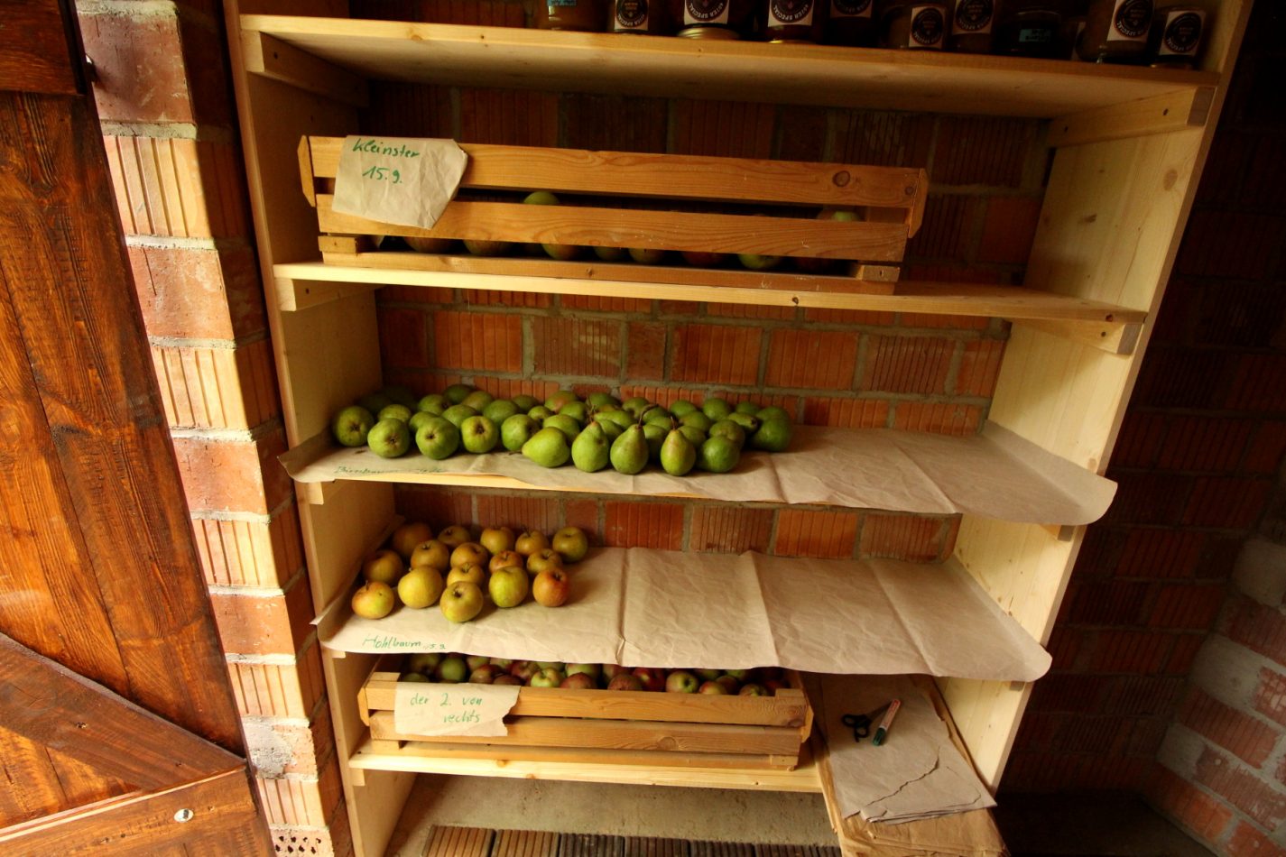 Am 11. Mai 2017 haben wir feierlich die letzten drei Äpfel aus dem Erdkeller geholt und aufgegessen. Mmh! Die waren immer noch lecker. Wahnsinn, oder? Am 16. September 2016 haben wir sie gepflückt und in das Erdkellerregal gelegt, und ziemlich genau acht Monate später schmecken sie immer noch, sind kaum verschrumpelt und top in Ordnung. Was für ein toller Lagerort so ein Erdkeller ist! Ganz ohne Strom oder „Controlled Atmosphere“ (= kontrollierte Atmosphäre), wie sie in modernen Lagerhäusern geschaffen wird, um das Altern von Obst und Gemüse zu verlangsamen.