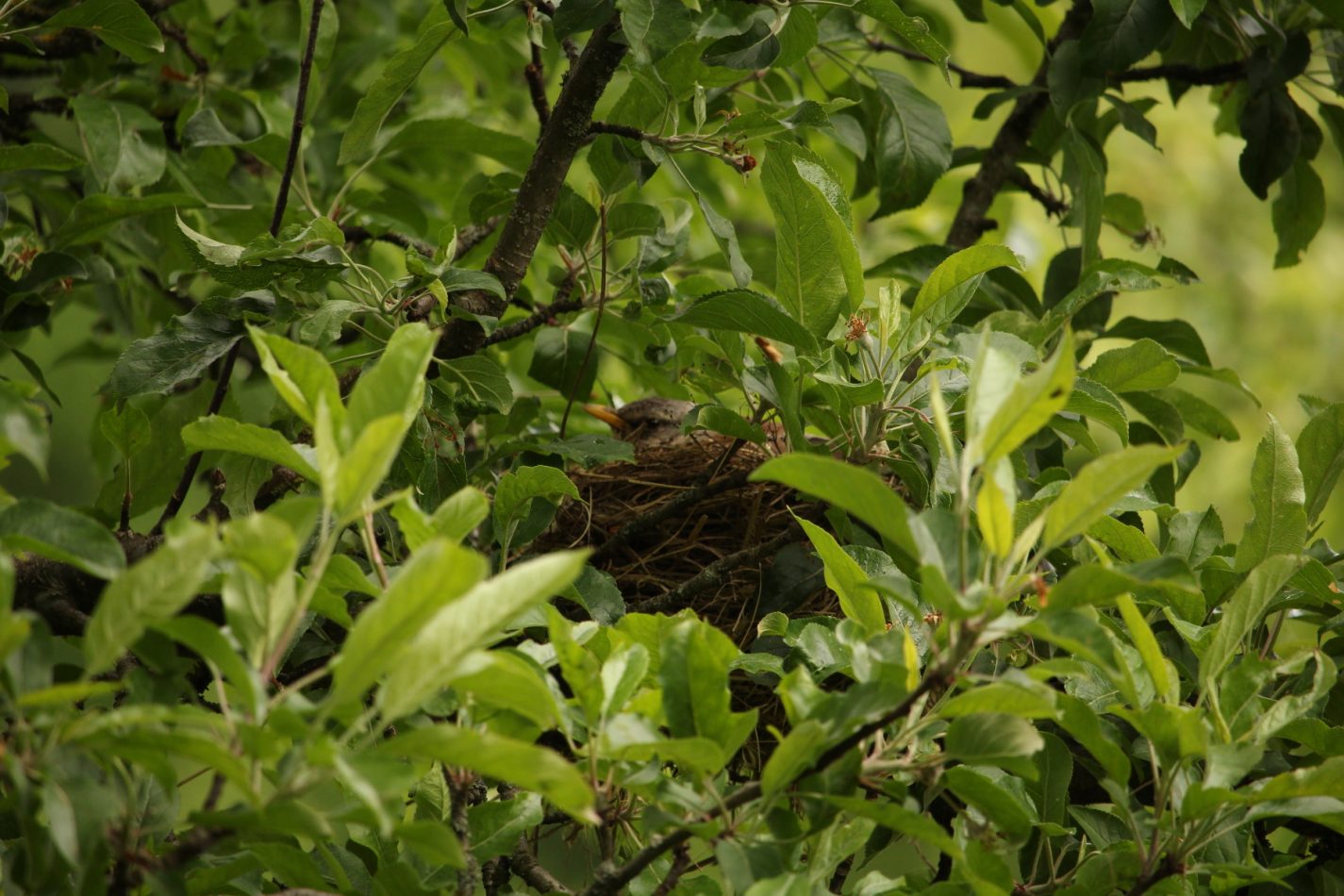 Welche Ruhe hätte man da im kühlen Schatten des alten, knorrigen Apfelbaums, bei dem der Wind sanft in den Blättern raschelt; in dem die Meise akribisch Blatt für Blatt nach Insekten absucht; in dem die Wacholderdrossel in ihrem Nest sitzt und geduckt beobachtend ihre Eier ausbrütet; in dem sich vor ein paar Wochen der Bienenschwarm der Nachbarin gesammelt hat, direkt über der sehr angespannten Wacholderdrossel, die mutig ausharrend ihr Nest geschützt hat gegen das seltsame, Alien-gleiche Wesen „Imker“.