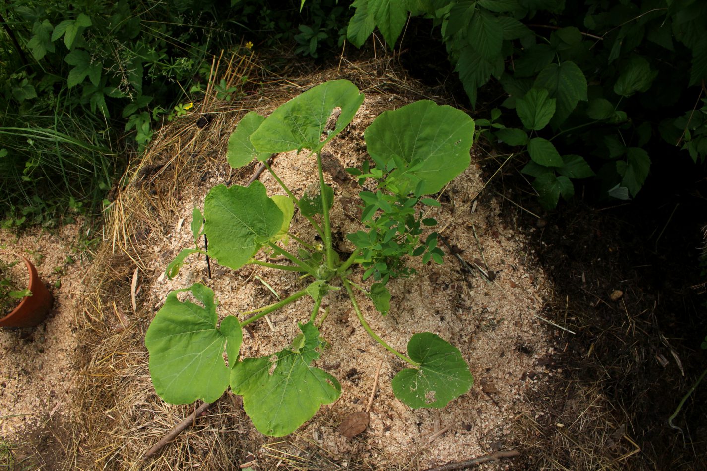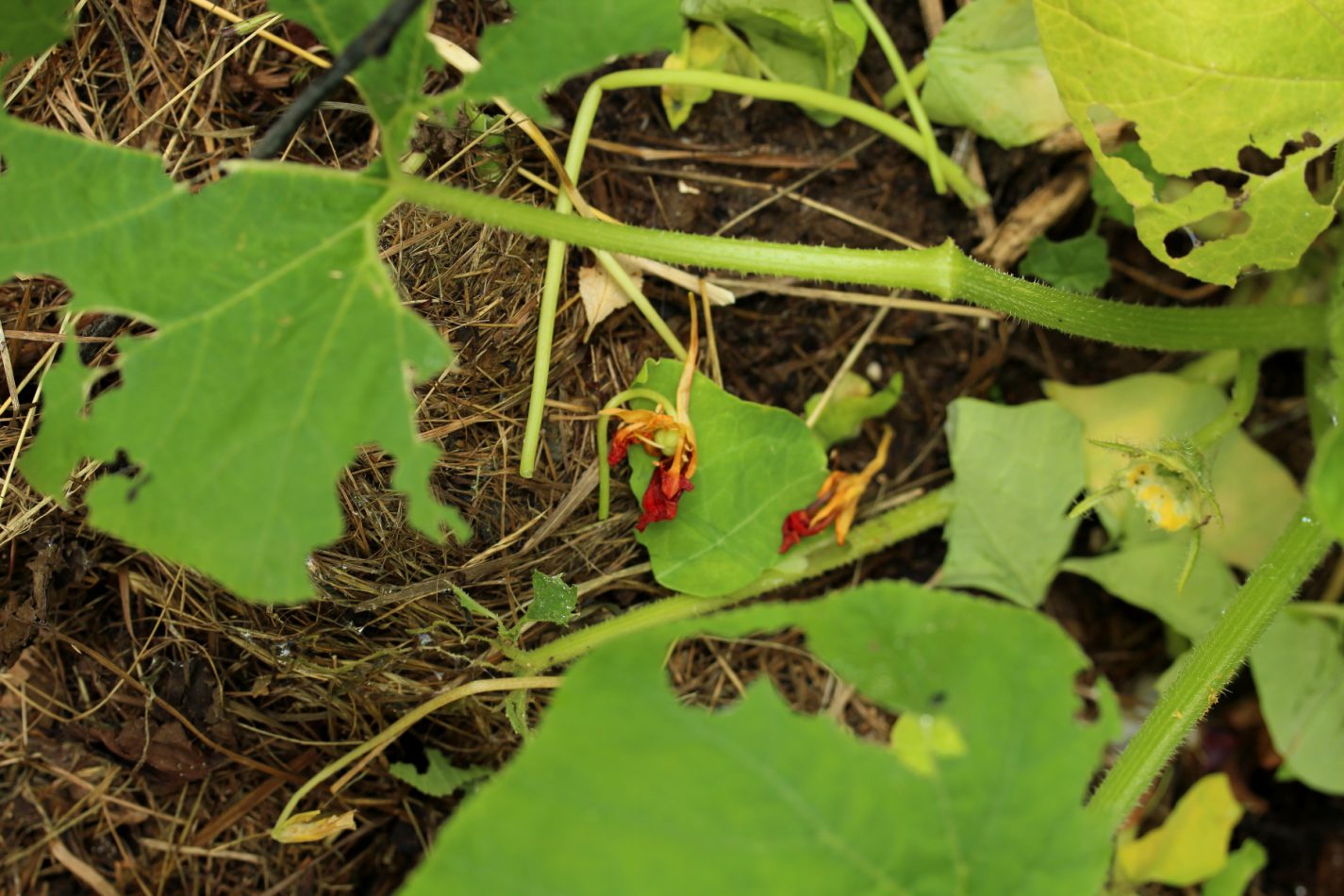 Dunkle Grummelwolken schwebten über mir, während ich die schlimmsten Spuren mit der Gartenschere beseitigte. Ich überlegte. Wenn Schnecken tatsächlich Kapuzinerkresse aufgrund ihrer Senföle meiden, dann müsste doch auch Kapuzinerkressemulch helfen, die Schnecken fernzuhalten… Ein Versuch ist es jedenfalls wert.