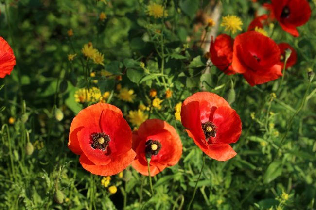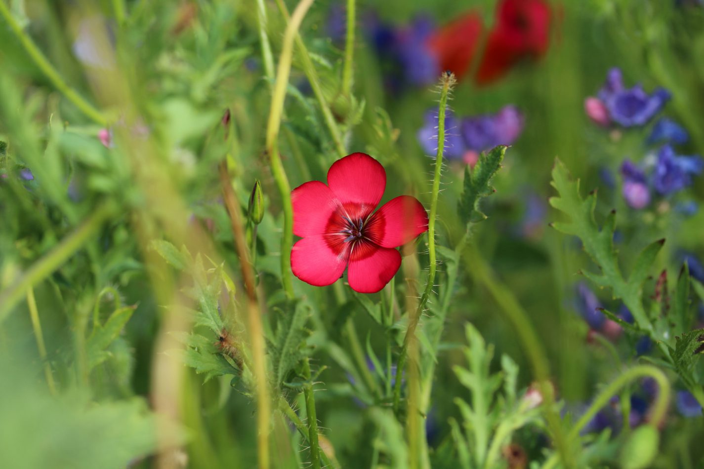 So mancher Betrachter würde sagen: „Das sieht jetzt aber wüst aus. Willste das nicht mal schön sauber abmähen?“ Nein, will ich nicht :-). Das einzige, was ich entfernt habe, waren die unzähligen, extrem dicht stehenden Mohnstängel, nachdem sie ihre Samenkapseln geleert und abgeworfen haben, zusammen mit den Himbeer- und Brombeerranken, die dazwischen versteckt aufkeimten.