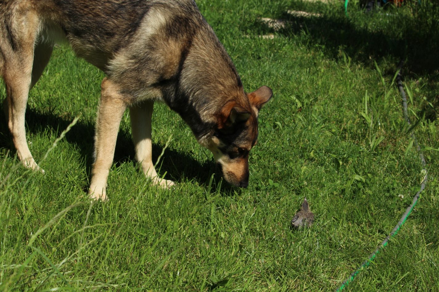 Montagmorgen zeigte unsere Wölfin mir an, dass sie unter´m Carport etwas Spannendes entdeckt hat. Ich ließ sie – in Hab acht – gewähren, damit sie mir ihre Entdeckung zeigen konnte. Vermutlich eine Maus oder eine junge Ratte. Ganz gut, wenn sie die hier ein bisschen aufscheucht. HUAH! Plötzlich ein lautes Gefiepse, heftiges Geflattere! Ein Schrei von mir: „STOP! HIERHER!“ Und dann saß es vor mir, heftig atmend, den Schnabel weit aufgerissen, die Flügel ausgebreitet, und nach einem Schreckmoment, schob es sich mit seinen Flügeln rudernd ins nächste Gebüsch: Eins der Amseljungen! Wie cool ist das denn! In mir jubelierte es. Wenigstens eins hat doch überlebt!