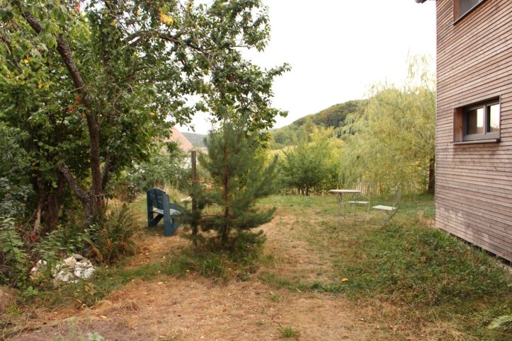 Überhaupt fühlen wir uns wie hergezaubert: Frisches grünes Gras, richtige Bäume, letzte Sommertage, herrlich warm! Kurze Hose, T-Shirt. Es duftet nach Gras, Erde und Wald, und es gibt unglaublich viel zu hören: Insektensummen, Vogelflattern und Gezwitscher, Hähne krähen, Blätter rascheln im Wind, ein Apfel plumpst auf die Erde, Pflanzen knistern und das Haus knarxt… Wir hören sogar im Nachbarort Hunde bellen, die uns sonst nicht auffallen.