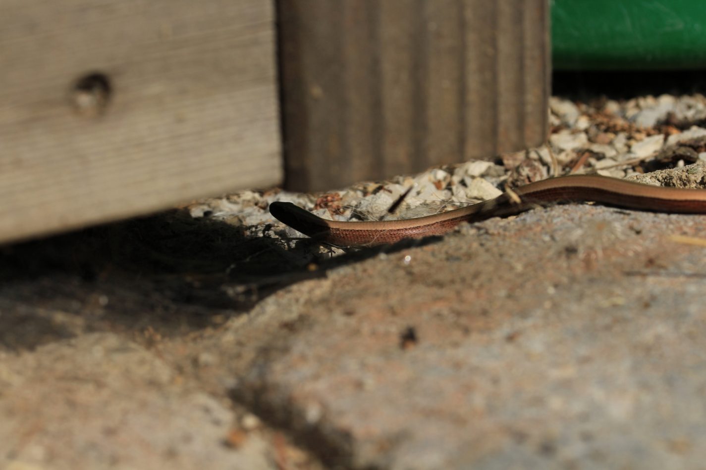 Liegt doch da direkt vor unsere Haustüre eine kleine Blindschleiche!