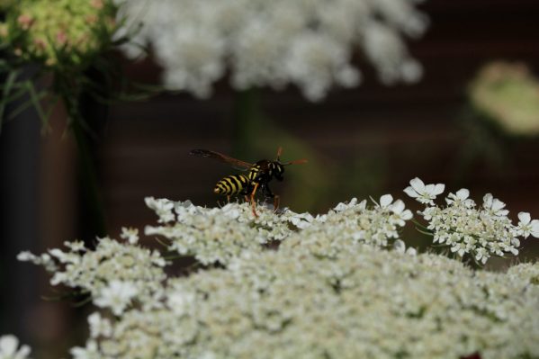 Geschafft bis ins Frühjahr 2019 – und da fingen die Wilden Möhren dann plötzlich an zu wachsen, sowas haste noch nicht gesehen! Normalerweise werden sie etwa „bis 1 / 1,20 m hoch“, steht in meinen Büchern. Die haben meine Wilden Möhren aber anscheinend nicht gelesen. Stattdessen wuchsen wir mir am Ende sogar über den Kopf! Und blühten eeewig! Und Insektenbesuche ohne Ende! Viele sind dort eingezogen, die Wilden Möhren waren das reinste Insektenhochhaus. Und es gab so viele Samen, dass ich sogar welche verschenkte und auf Spaziergängen mit Wölfin verstreute (Guerilla gardening mit Wilder Möhre, wie passend!).