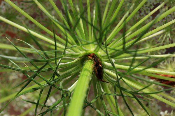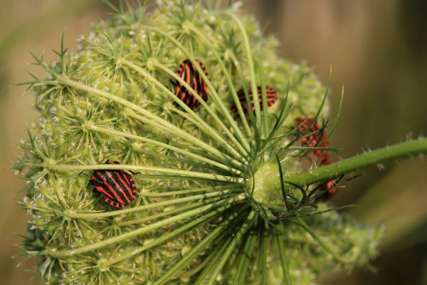 Wunderschöne Bilder und die Wanzenparade unter dem Schirm der Wilden Möhre ist auch fantastisch 🙂 Ist sie bei euch denn selten? Hier sehe ich sie sehr häufig. Unterm Baum hat sich auch eine angesiedelt, ob freiwillig oder mit ner Saatgabe, weiß ich nicht. Sie ist sehr klein, etwa 20 cm. Aber ich hoffe, sie versamt sich und wächst dort weiter, egal wie hoch. Hauptsache eine Pflanze, die Trockenheit abkann. Das sie so riesig werden können wie bei dir, wußte ich nicht. Toll 🙂 Die Wilde Möhre war hier neben Greiskraut, Flockenblume und Natternkopf vielerorts eine der wenigen Pflanzen, die trotz Trockenheit wochenlang durchgeblüht hat. Die muß schon tief wurzeln oder weit verzweigt. Erstaunlich, was für Überlebenskünstler. Auf daß sie in vielen Gärten ein neues zu Hause findet 🙂 Freu 🙂