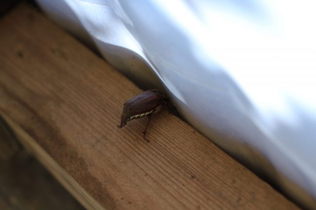 -> alles bei uns im Garten vorhanden! Vielleicht lebte dieser Maikäfer schon seit ein paar Jahren bei uns, ohne dass wir das mitbekommen haben? Und hat sich nun als ausgewachsener Käfer aus der Erde im Gewächshaus gegraben?