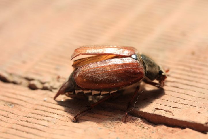 Natürlich musste ich vor der Rettungsaktion erst die Kamera holen. Und bevor die Maikäferdame wegfliegen durfte, musste ich sie natürlich unbedingt meinem Mann zeigen! Zusammen sahen wir zu, wie sie Kopf und Fühler in die Luft reckte als würde sie ihre Nase in den Wind stecken, wie sie ihre Deckflügel hob, ihre Hinterflügel auseinanderfaltete und – brumm! – sich wie ein Jumbojet in die Luft erhob und davonflog, wie nur ein dicker Käfer davonfliegen kann!