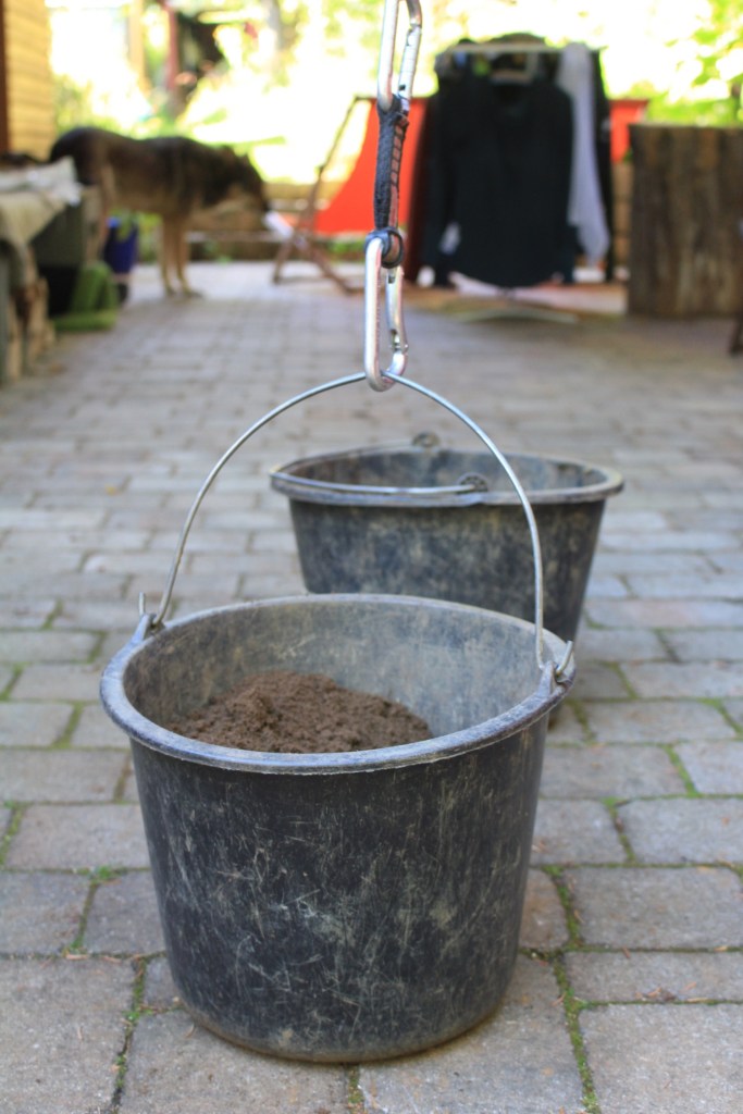 Noch Erde geholt. Vom Hänger in die Eimer geschaufelt und mit Schwung! hoch damit! Das gibt Armmuckis! Wer braucht schon ein Fitnessstudio? Pah! Dein Garten, dein Fitnesscenter.