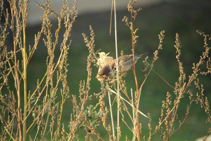 So wie die reinhauten, weiß ich nicht, ob da noch Samen für´s nächste Jahr übrig bleiben… zu dumm, dass wir – der Ansaatanleitung folgend – die Mohnblumen- und Kornblumensamen schon ausgestreut hatten… Vielleicht haben die Spatzen sie ja übersehen, so winzig wie diese Samen sind. Na, wir werden es nächstes Frühjahr wissen.