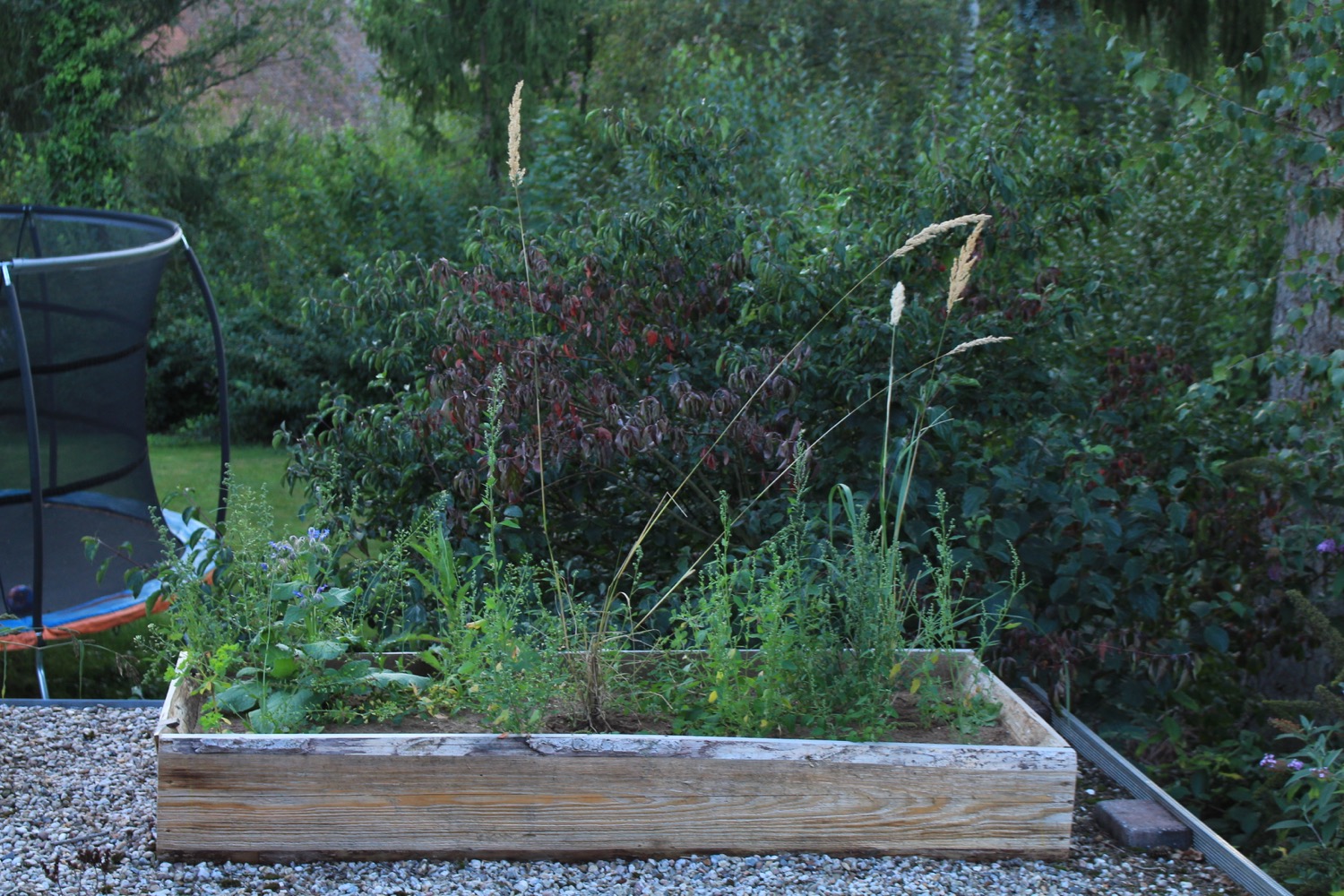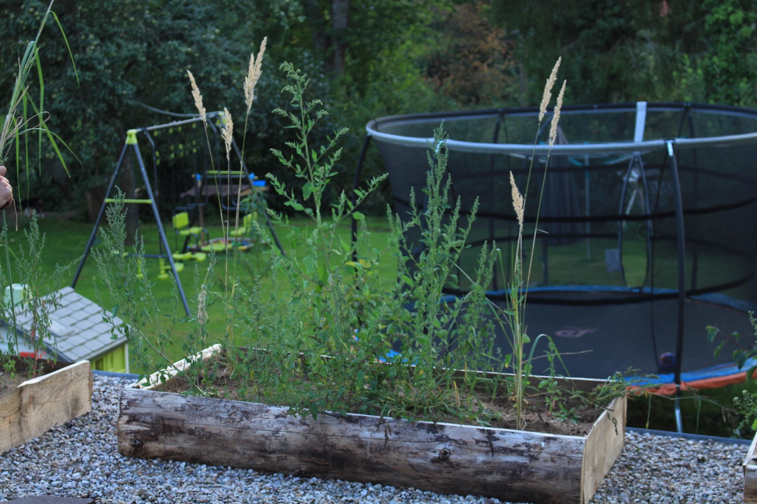 Bis wir diesen Sommer weggeworfene Bretter entdeckten. Lagen da so herum, herrenlos, mitten im Irgendwo im Wald. Hui! 🙂 Das war ja geradezu eine Einladung! Zack, eingepackt. Und schon haben wir gesägt und geschraubt. Und schon hatten wir drei Hochbeete für´s Carportdach.