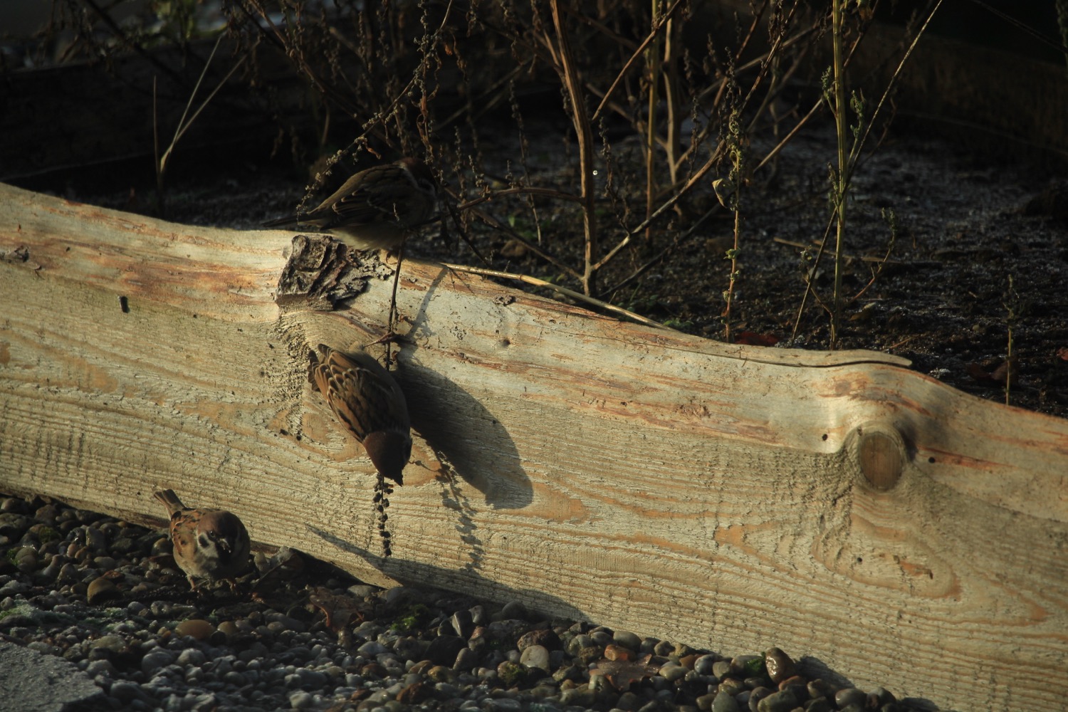 Über zwei Wochen lang besuchte jeden Morgen ein kleiner Spatzentrupp unsere drei Hochbeete und frühstückte dort ausgiebig. So geht Vogelfütterung eigentlich! Von wegen Miesenknödel und sonstiges Schischi. Eigentlich bräuchte es das gar nicht, wenn, ja wenn… die ganze Welt voll mit Orten wäre wie diesen, wo sich die Vögel durch den Winter füttern könnten!