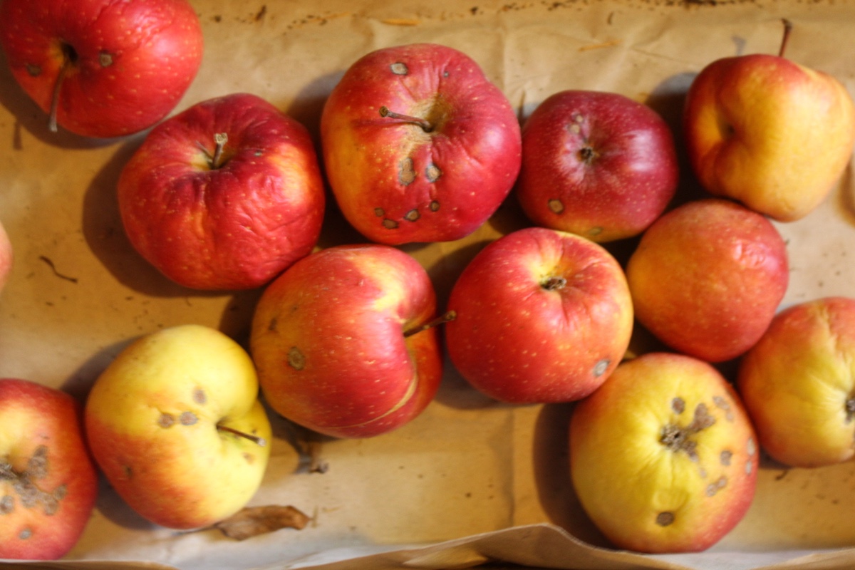 Obwohl der Kühlschrank nun wieder läuft, ist der Erdkeller dieses Jahr noch nicht im Dornröschenschlaf versunken. Abgesehen von den Flaschen Apfelessig, der Marmelade und dem eingemachtem Obst lagern dort auch immer noch Äpfel! Unglaublich, was man mit so einem Raum unter der Erde für eine Haltbarkeit erzielen kann.